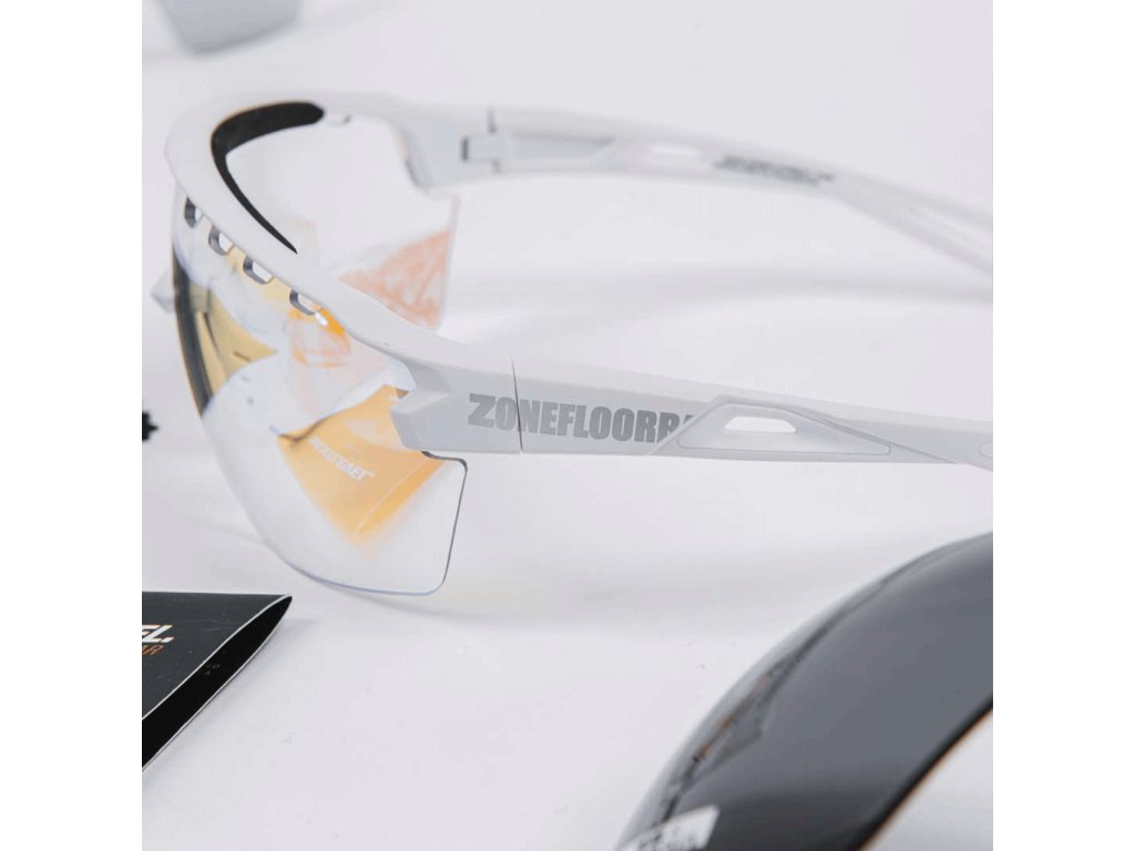Revoluční sportovní brýle na florbal s maximalizovanou velikostí rámu a vyměnitelnými čočkami ve třech barvách. Jedno klasické sklo s UV ochranou, druhé holografické a třetí tmavé pro venkovní využití proti sluníčku. První dvě skla jsou schválená IFF pro použití ve florbalovém zápase. Součástí balení je ochranné pouzdro a hadřík na skla.
