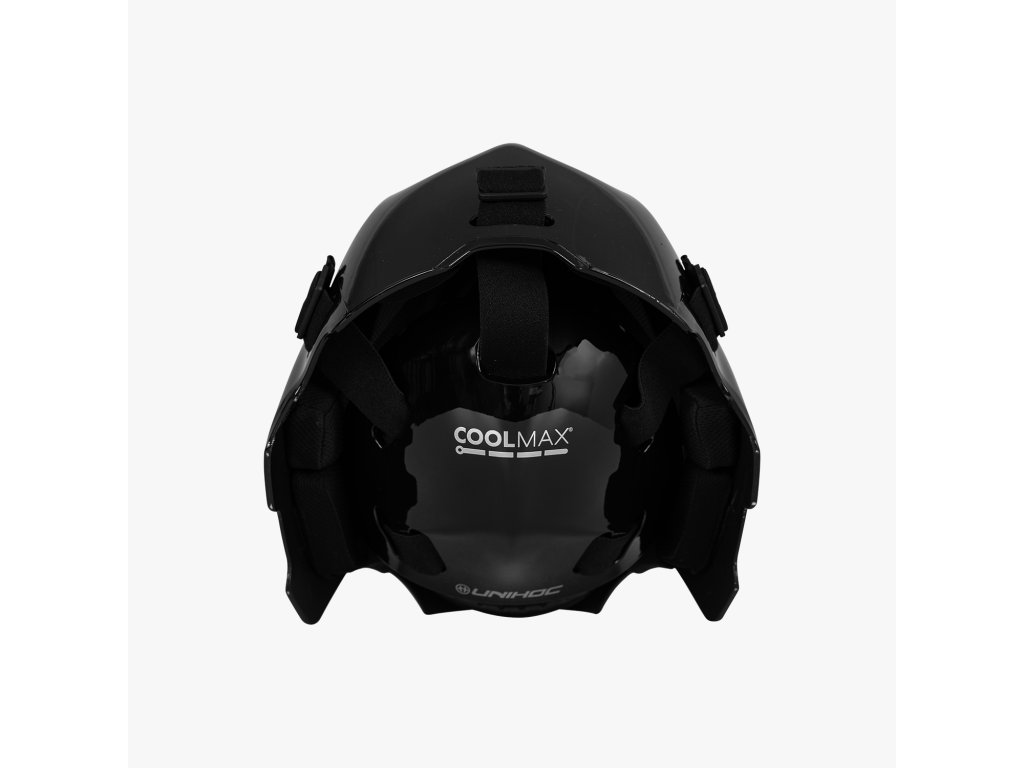 Optimalizovaný tvar, vnitřní polstrování potažené prodyšnou tkaninou COOLMAX se stará o vaše pohodlí a rychlejší schnutí. Mřížka typu "Cat eye cage" zlepšuje viditelnost. Nastavitelný košíček na bradu s elastickým páskem. Maska je vyrobená z odlehčeného ABS plastu a mřížka z oceli. Schválená Mezinárodní florbalovou federací IFF.