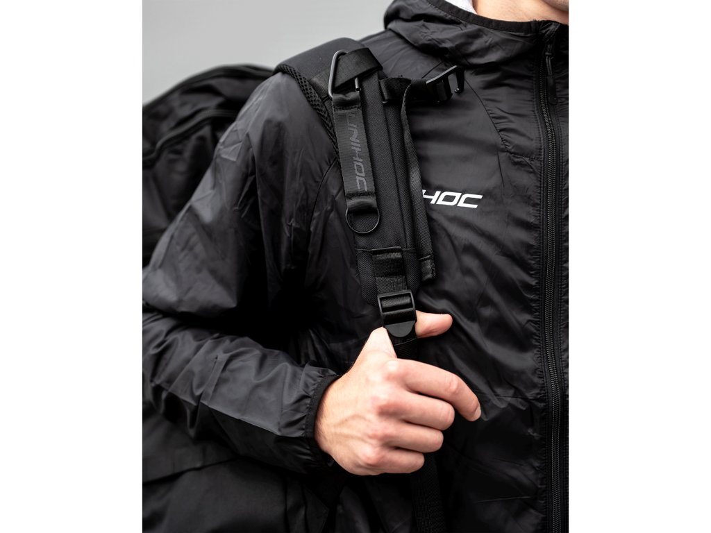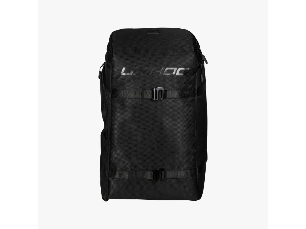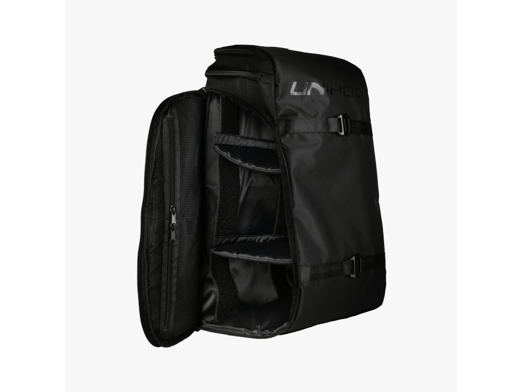 Exkluzivní sportovní batoh Unihoc Dark Line Deluxe 35L z nové modelové řady tašek DARK LINE, která je vyrobena ze 100% recyklovaného materiálu. Batoh má několik různých přihrádek na vybavení a oblečení a samostatnou přihrádku na notebook. Přihrádky na vnitřní straně batohu lze pomocí suchého zipu umístit do různých poloh a vytvořit tak například oddělené prostory na boty a mokré oblečení. K dispozici je také několik malých vnitřních a vnějších kapes a praktický držák na hokejky podél vnější strany batohu, který pojme až dvě hole.