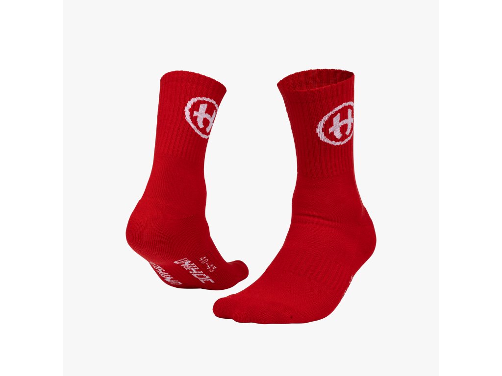 Bavlněné sportovní ponožky Unihoc Crew na noze skvěle sedí díky několika speciálním panelům na nártu, prstech a kotníku. Zároveň zajišťují prodyšnost materiálu. V horní části je vyšitý znak Unihoc a na chodidle logo Unihoc.