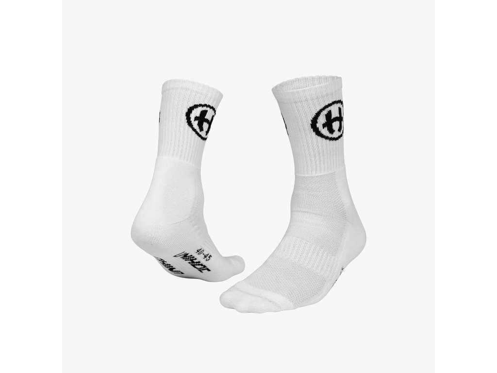 Bavlněné sportovní ponožky Unihoc Crew na noze skvěle sedí díky několika speciálním panelům na nártu, prstech a kotníku. Zároveň zajišťují prodyšnost materiálu. V horní části je vyšitý znak Unihoc a na chodidle logo Unihoc.