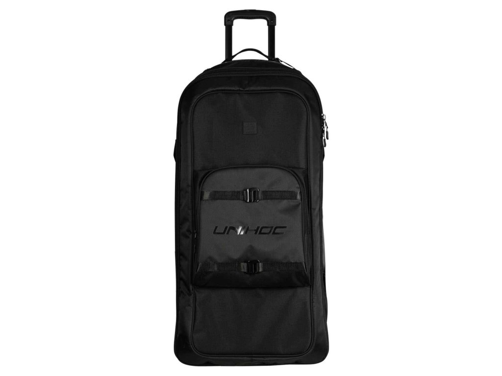 Velká a prostorná sportovní taška na kolečkách z nové modelové řady DARK LINE je vyrobena ze 100% recyklovaného materiálu. Vyvinuta je speciálně pro brankáře, kteří mají objemné vybavení. Obsahuje několik vnějších a vnitřních kapes se zipy. Taška má také dvě běžná ucha jako sportovní tašky. Objem tašky je 120 litrů.