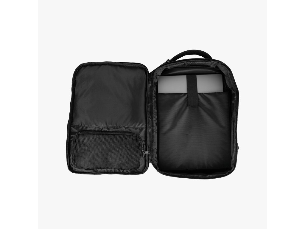 Menší ale velice praktický batoh z nové modelové řady DARK LINE, která je vyrobena ze 100% recyklovaných látek. K dispozici je několik malých vnitřních a vnějších kapes na zip. Uvnitř je přihrádka na notebook. Polstrované ramenní popruhy a záda. Objem batohu je 10 litrů.