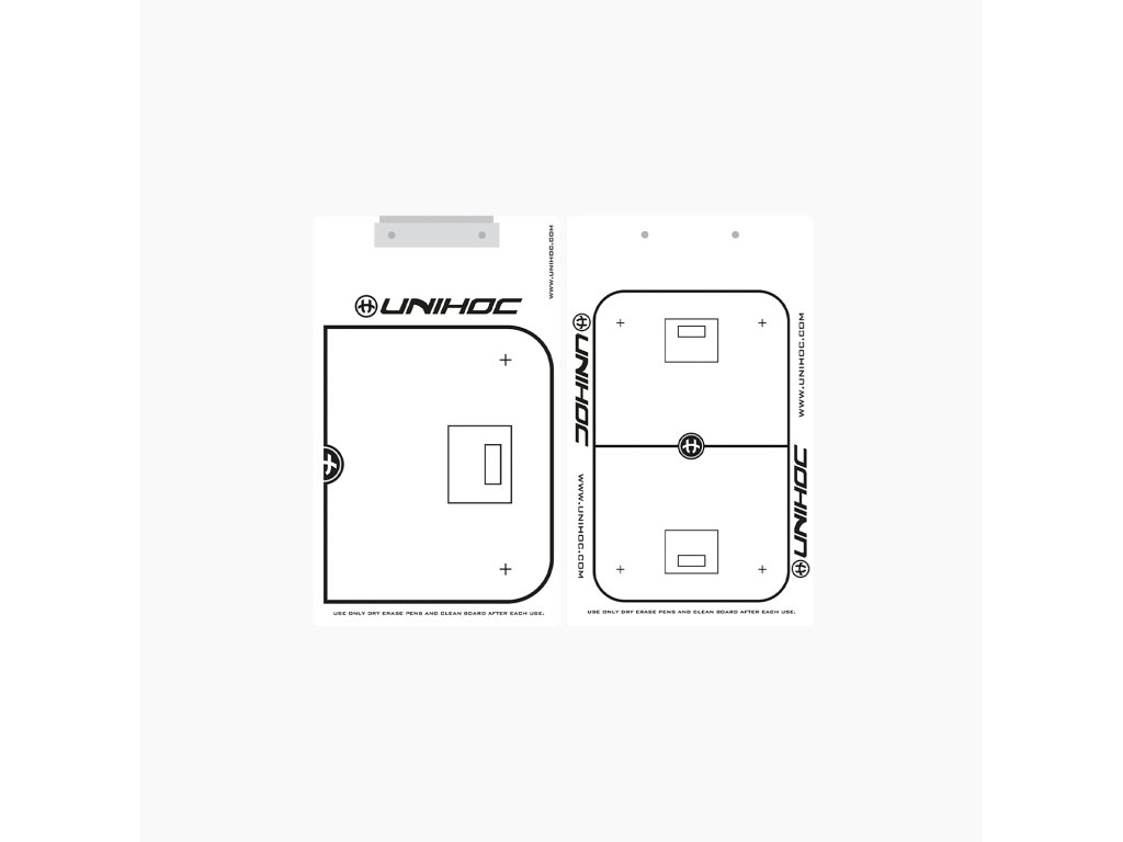 Tabulka na nákres cvičení a taktiky. Součástí je fixa a klip na tužku. Jedna strana zobrazuje celé hřiště, druhá půlku.