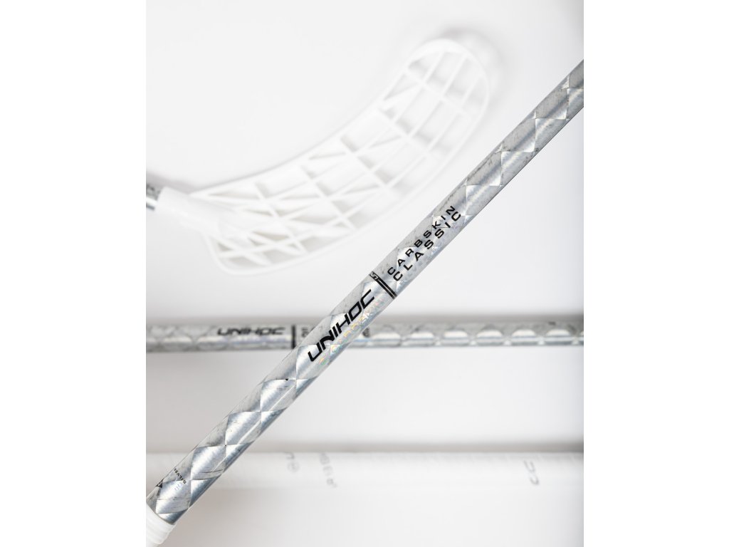 Florbalové hole z modelové řady CARBSKIN® jsou jedny z nejprémiovějších modelů od značky Unihoc. Mezi elitními hráči jsou velmi oblíbené díky ultralehkému karbonovému shaftu a odolnosti. Shaft CARBSKIN® je vyrobený z tenkých karbonových vláken a nabízí bezkonkurenční stabilitu a rychlou reakci. Výsledkem je florbalová hůl s bleskurychlým uvolňováním střel a vynikající odolností. Pokud požadujete nejlepší rovnováhu mezi lehkostí a ovladatelností, zvolte hokejku CARBSKIN®.