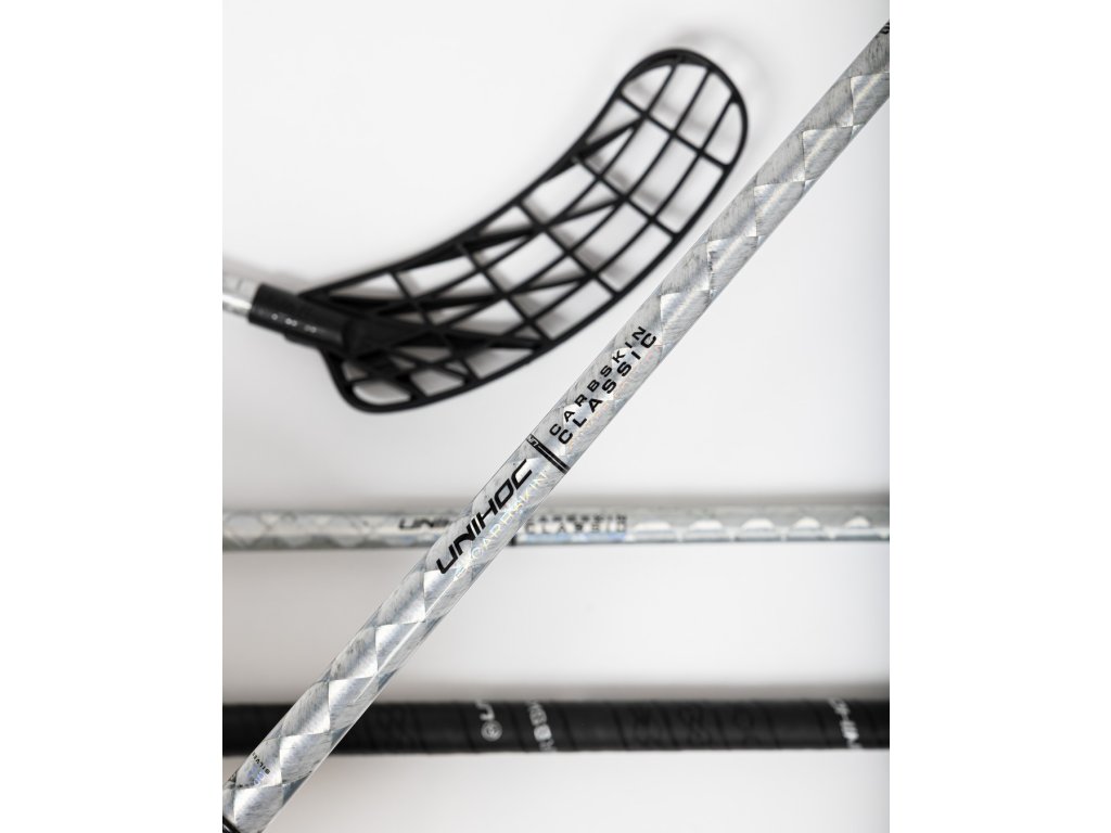 Florbalové hole z modelové řady CARBSKIN® jsou jedny z nejprémiovějších modelů od značky Unihoc. Mezi elitními hráči jsou velmi oblíbené díky ultralehkému karbonovému shaftu a odolnosti. Shaft CARBSKIN® je vyrobený z tenkých karbonových vláken a nabízí bezkonkurenční stabilitu a rychlou reakci. Výsledkem je florbalová hůl s bleskurychlým uvolňováním střel a vynikající odolností. Pokud požadujete nejlepší rovnováhu mezi lehkostí a ovladatelností, zvolte hokejku CARBSKIN®.