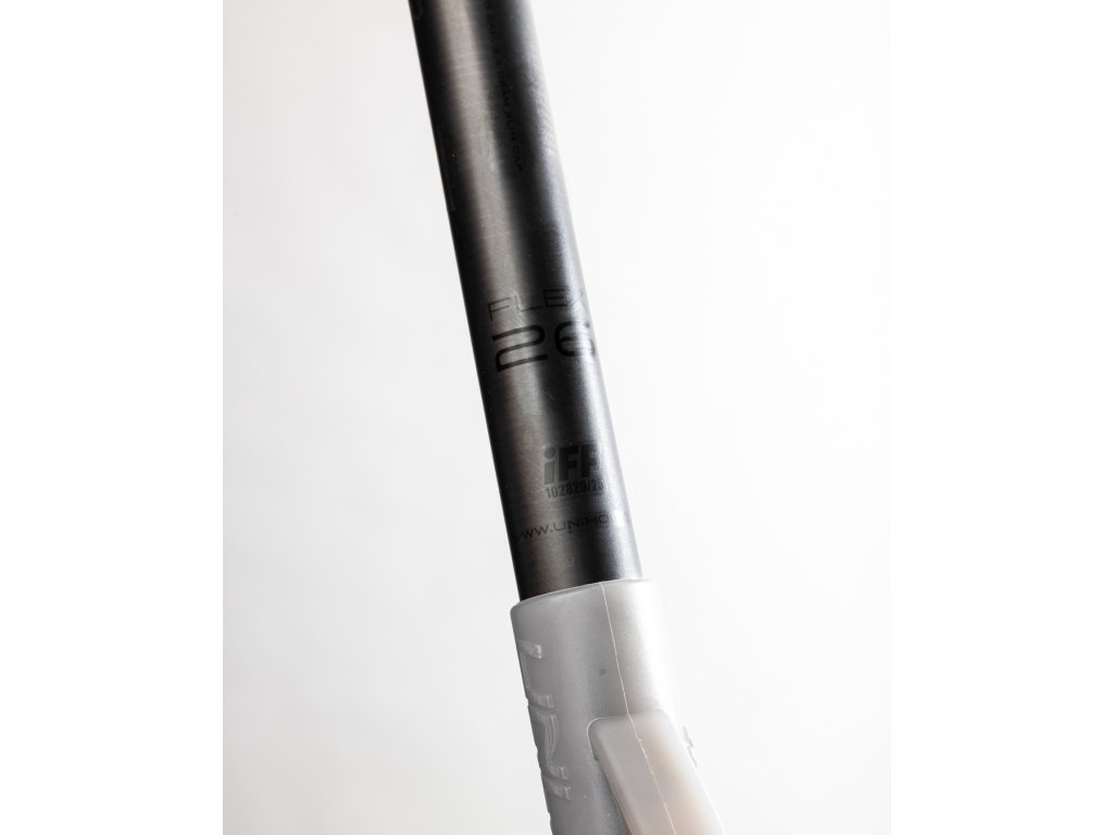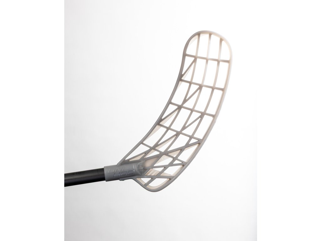 Hokejky z modelové řady EVOLAB jsou nejlehčí na světě. Všechny komponenty jsou vyrobeny tak, aby byly co nejlehčí a vznikla super lehká a perfektně vyvážená florbalová hokejka. Shaft je ze 100% prémiového karbonu ve flexu 26 mm, což je velmi tvrdá hůl určená elitním a silovějším hráčům. Hokejka je osazená čepelí Unilite v nové barvě Ice Grey. Vyrobena je z odlehčeného středně tvrdého materiálu PP. Letošní design shaftu je komplet v černé barvě, kterou doplňuje šedá omotávka a čepel. Držení hole je klasické kulaté v tenčí šířce 23,8 mm. Hokejka váží v délce 96 cm pouhých 165 g!