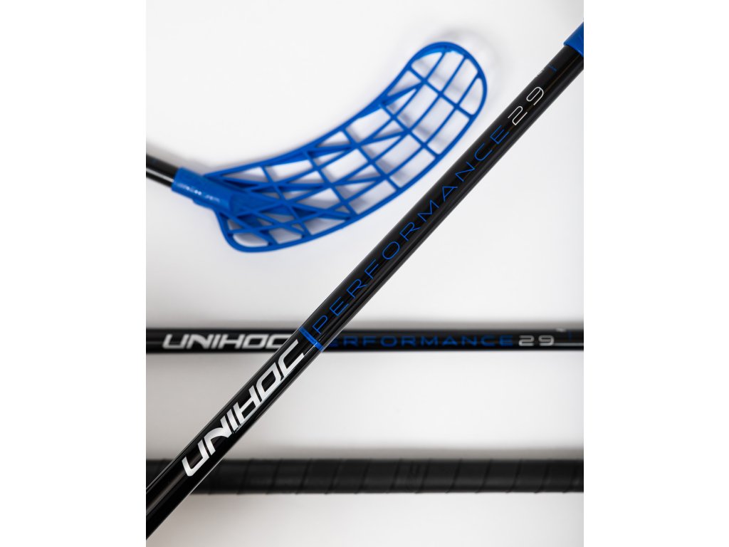 Florbalová hokejka Unihoc Unilite Performance Mid FL 29 Black patří do modelové řady PERFORMANCE, která představuje hole ve střední cenové kategorii. Hokejka má elegantní design v černé a modré barvě, kulaté držení a tvrdost (flex) 29 mm, díky kterému je vhodná pro většinu hráčů a hráček. Osazena je nejprodávanější čepelí z odlehčeného materiálu FEATHER PP.