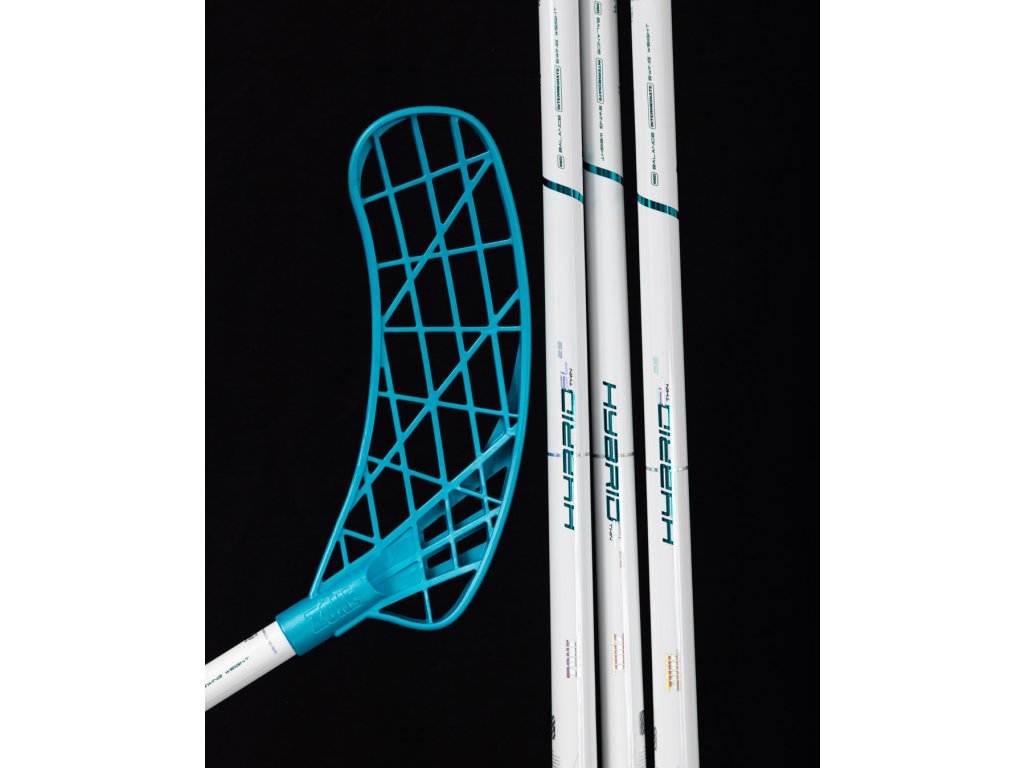 Florbalová hokejka z modelové řady HYBRID, která se vyznačuje standardní délkou omotávky, vyvážením na střed hole a je navržena pro hráče a hráčky, kteří jsou hlavně univerzály – střílejí, přihrávají i driblují. Osazená je populární čepelí Air/One z odlehčeného materiálu PP (Air Soft Feel). Technologie shaftu Superlight je vyrobena ze směsi lehkého karbonu (95 %) a odolnějšího kompozitu (5 %). Díky tomu je hokejka lehká, ale neřadí se mezi ty úplně nejlehčí hole.
