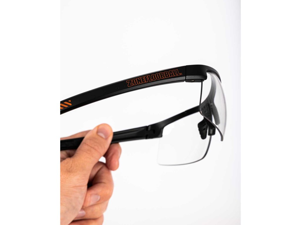 Florbalové sportovní brýle Zone Eyewear Protector SR Black/Lava jsou určeny k ochraně očí před úrazem. Mají nerozbitná a nemlžící se skla, nosní opěrky a nastavitelný pružný zadní pásek. Skla nejde vyměnit za dioptrická. Brýle jsou schválené a doporučované Mezinárodní florbalovou federací (IFF). Součástí je ochranné pouzdro s karabinou.